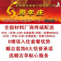 全部材料厂商终端配送 顺吉整体精装杭城首家0增项拎包入住,80方(半包+主材+全套家具+环保)仅需98000元,120方(半包+主材+全套家具)仅需128000元, 透明消费{预算=决算}